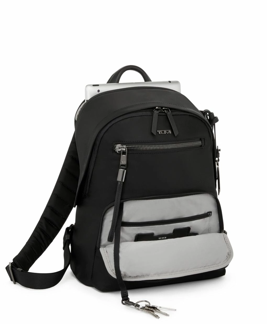 - Padded adjustable backpack straps with D-ring & loop compatible with select TUMI+ accessories*