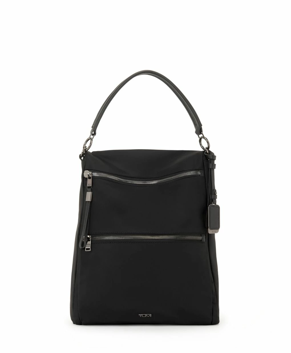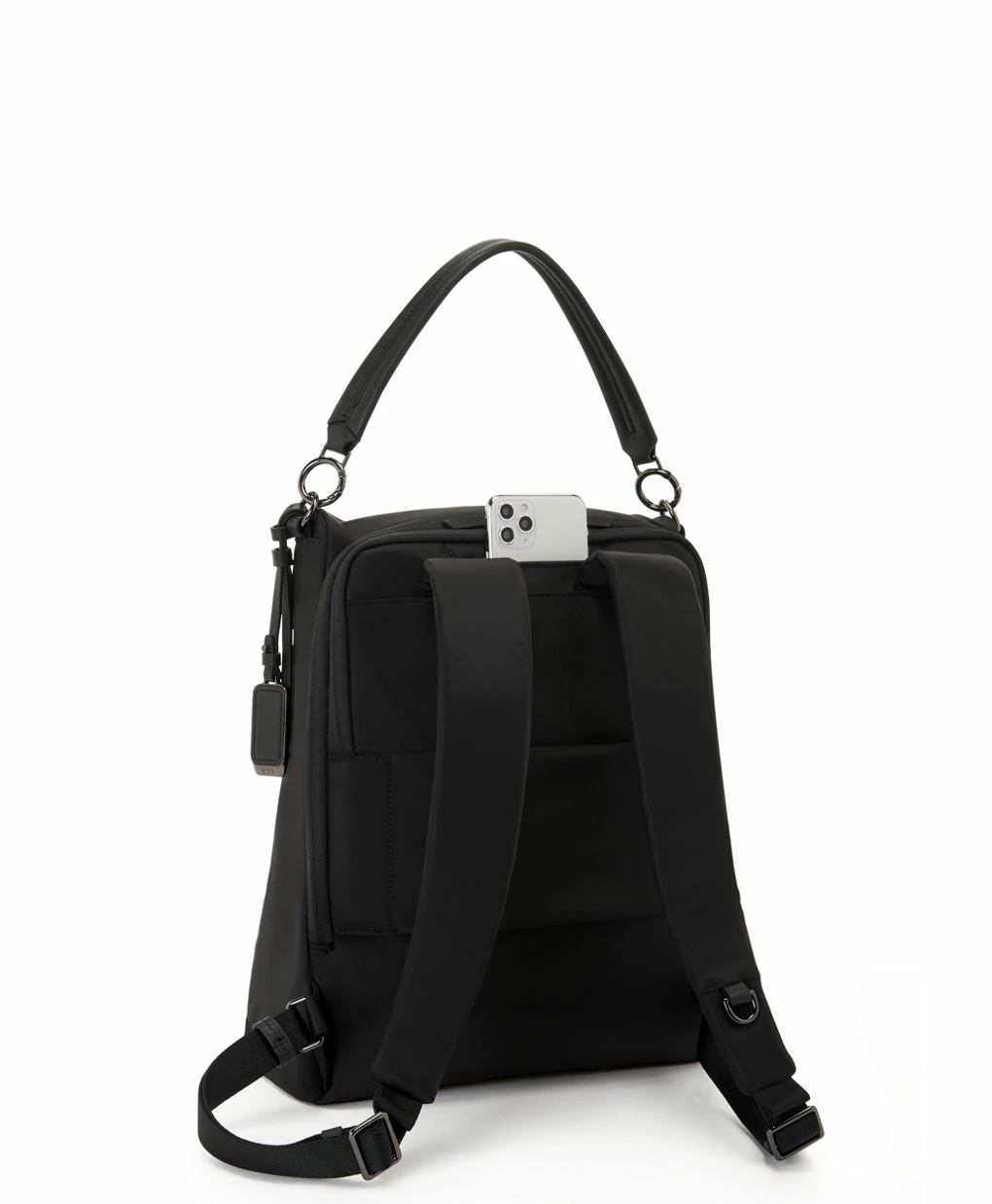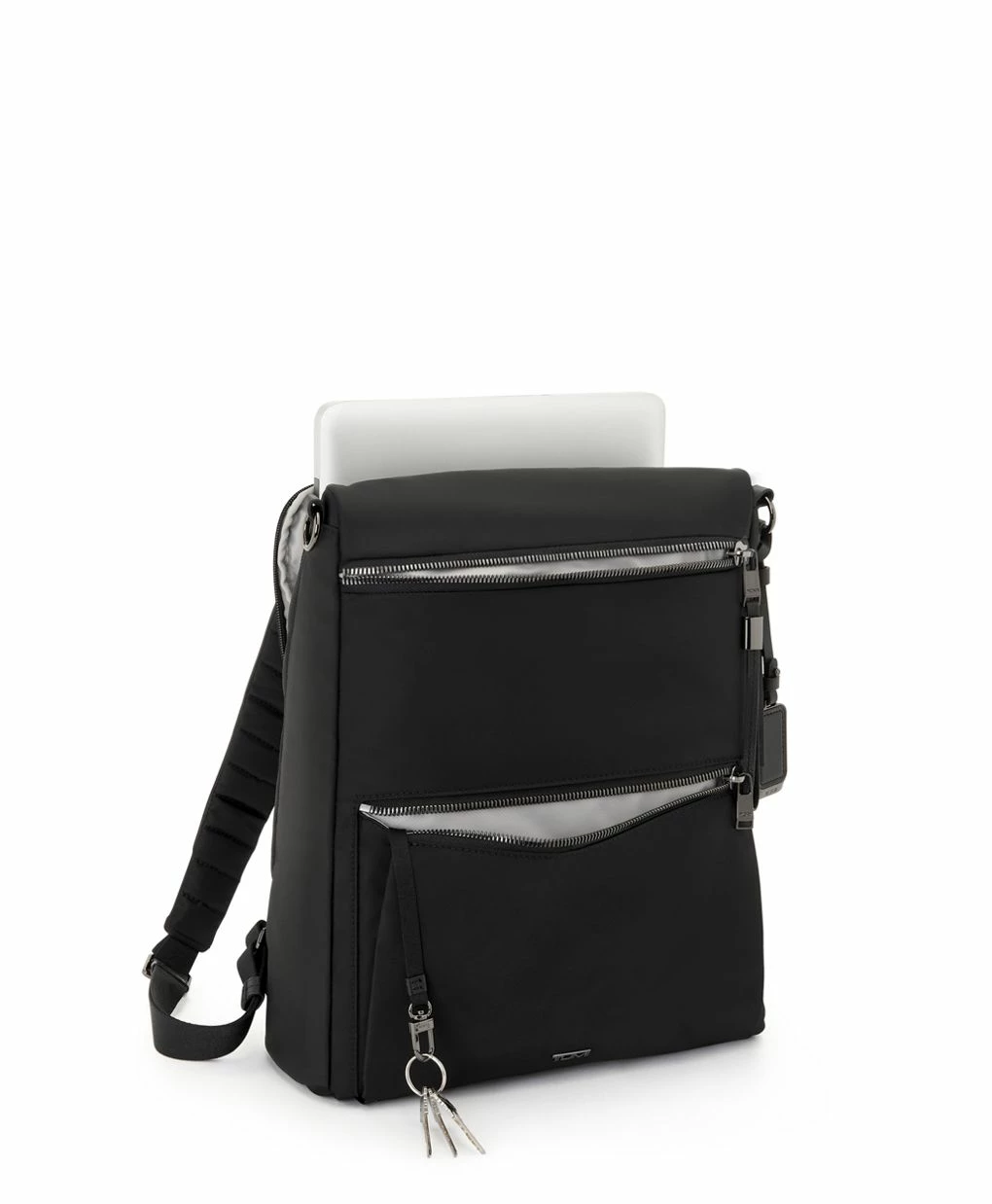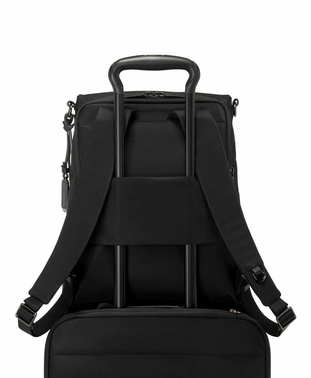 - Padded adjustable backpack straps with D-ring and loop compatible with select TUMI+ accessories*
