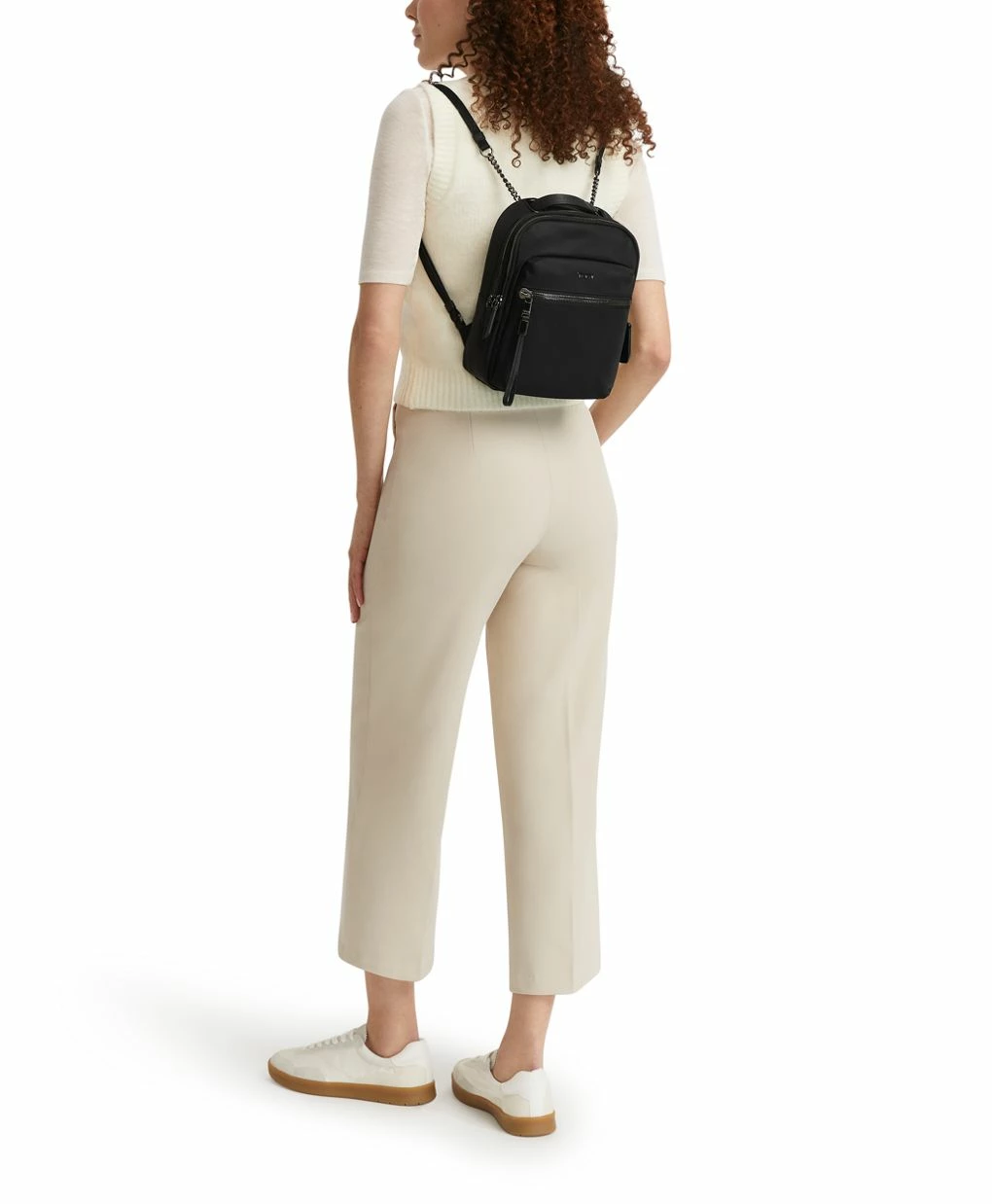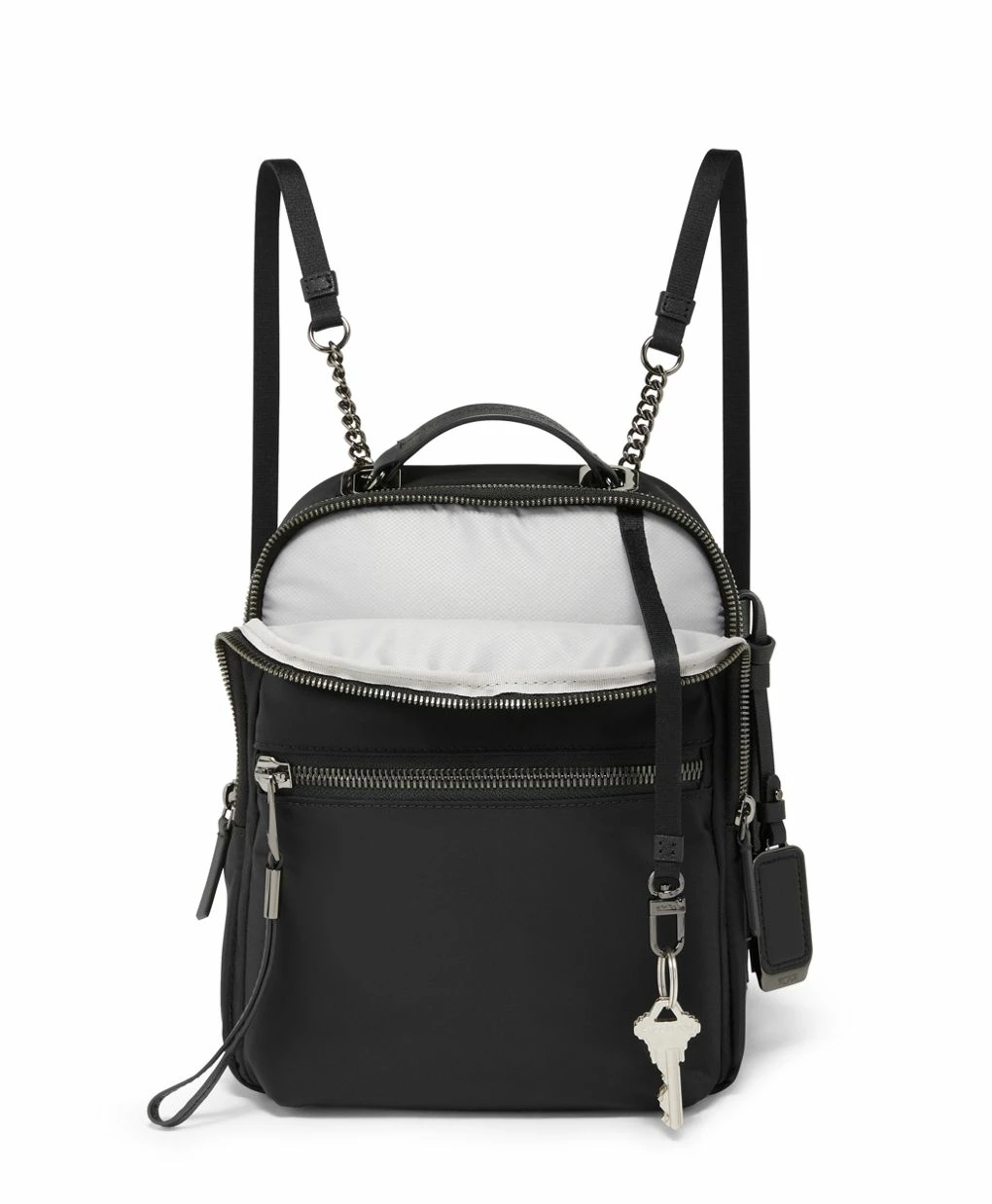 Switch up your look in an instant with this compact backpack whose convertible straps transform it into a crossbody. Finished with chain detailing, it adds a stylish touch however you wear it.
