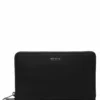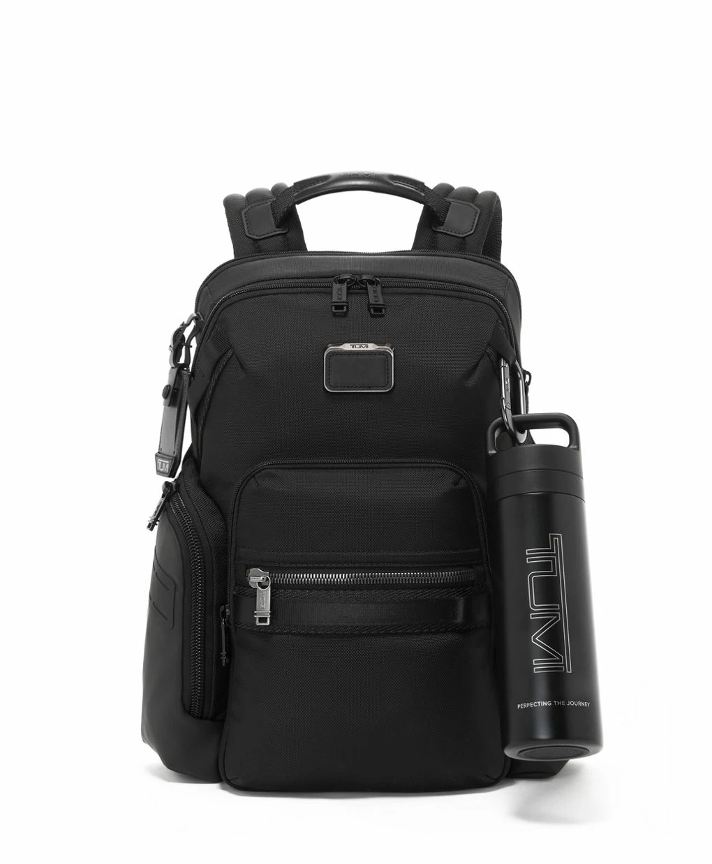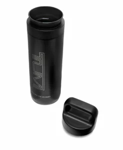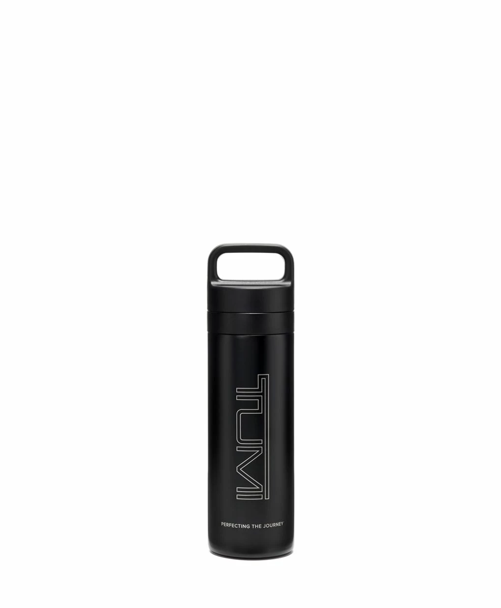 TUMI engineered a stainless steel water bottle with a top handle lid and wide-mouth rim for easy, on-the-go drinking. The vacuum-insulated bottle can also keep beverages hot or cold up to six hours.